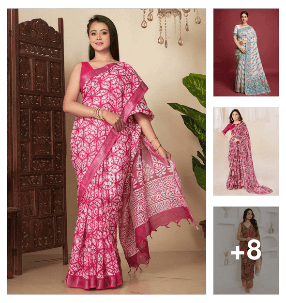 women printed casual wear saree with blouse