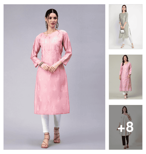 women embroidered three quarter sleeve kurta pant with dupatta set