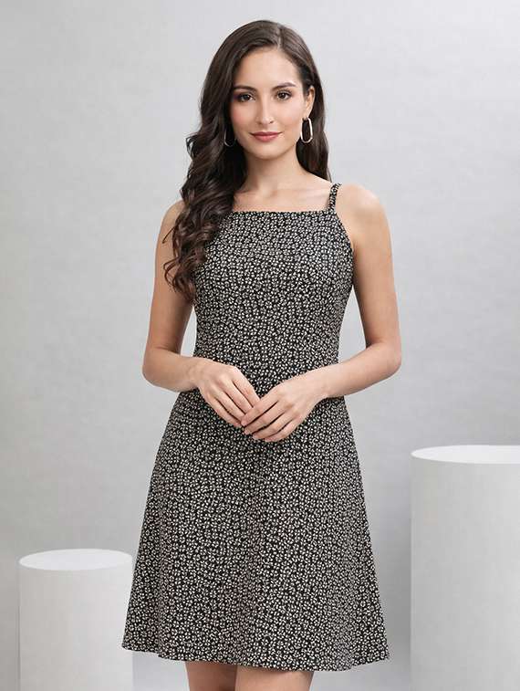 - » women printed shoulder strap a-line dress