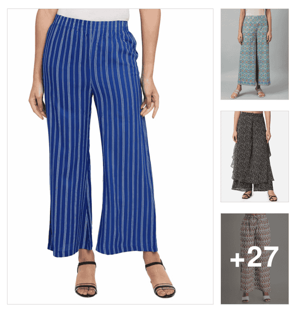 globus women gold foil printed elasticated waist flared ethnic palazzos