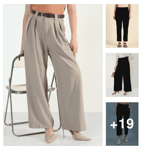 women solid high rise straight trouser