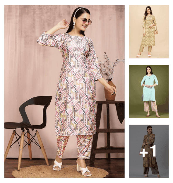 women floral printed three quarter sleeve kurta pant with dupatta set