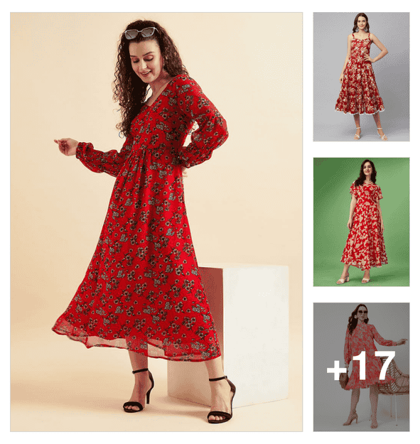 women floral print puff sleeve fit & flare dress