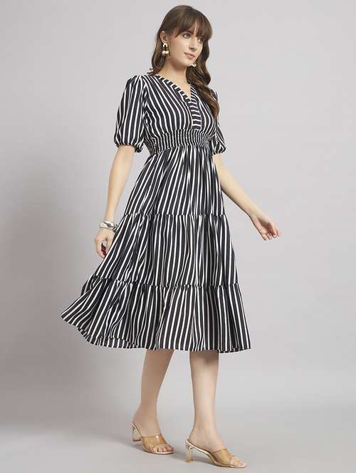 women printed puff sleeve tiered dress