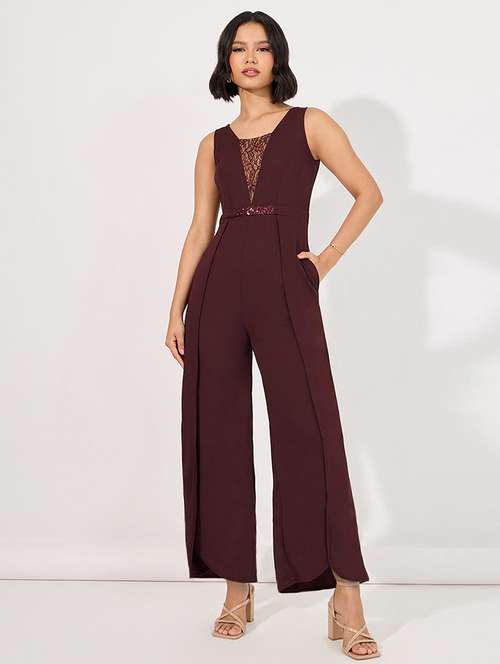 women solid sleeveless lace umpsuit