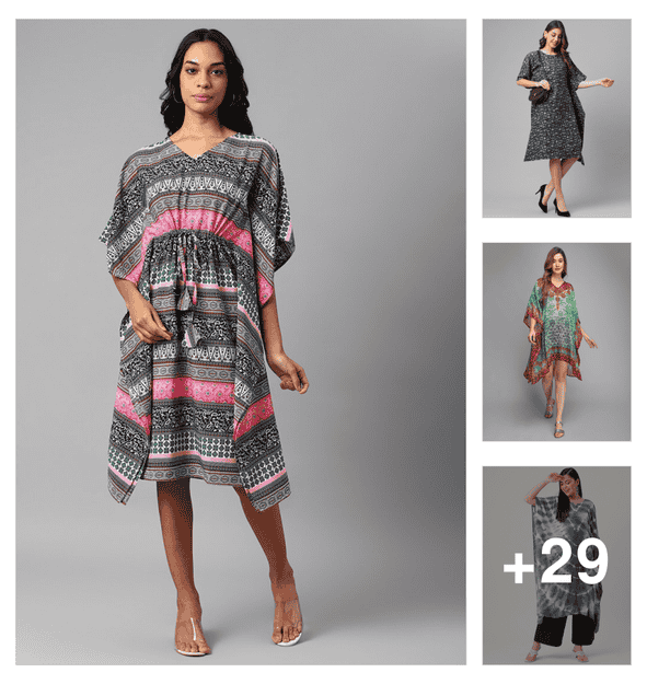 women printed kimono sleeve kaftan dress