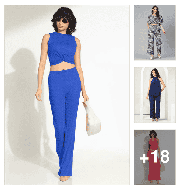 women solid t-shirt and trouser co-ord set