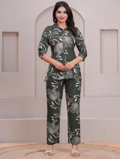 women floral three quarter sleeve shirt & trouser co-ord set