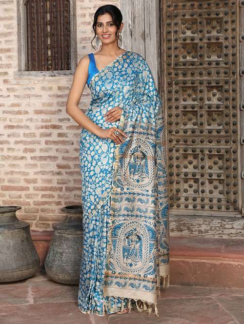 The blouse worn by the model might be for modelling purpose only. Check the image of the blouse piece to understand how the actual blouse piece looks like.