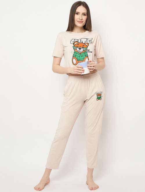 - After a long tiring day, slip into something homely, shop for the all-new collection of nightwear sets for ladies in S sizes and gorgeous beige designs and colors.