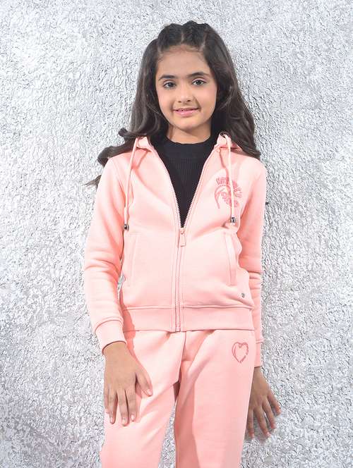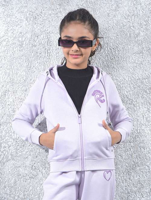 girls solid long sleeve hooded sweatshirt