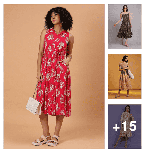 women printed long sleeve fit and flared dress