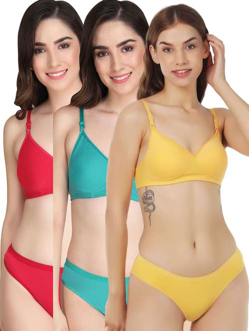 women pack of 3 solid bra and panty set