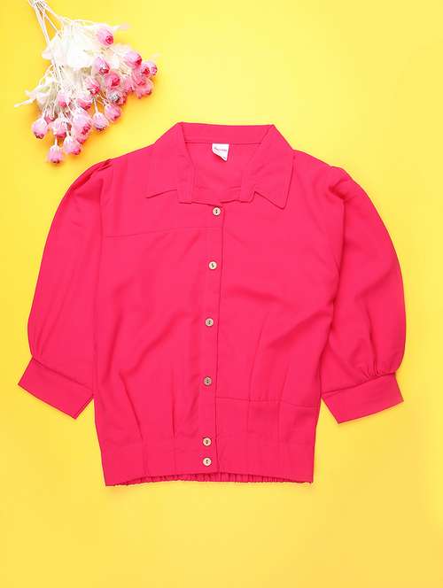 girls solid collared puff sleeve top
