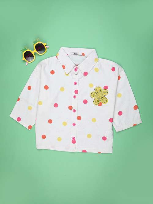 girls polka doted collared three quarter sleeve top