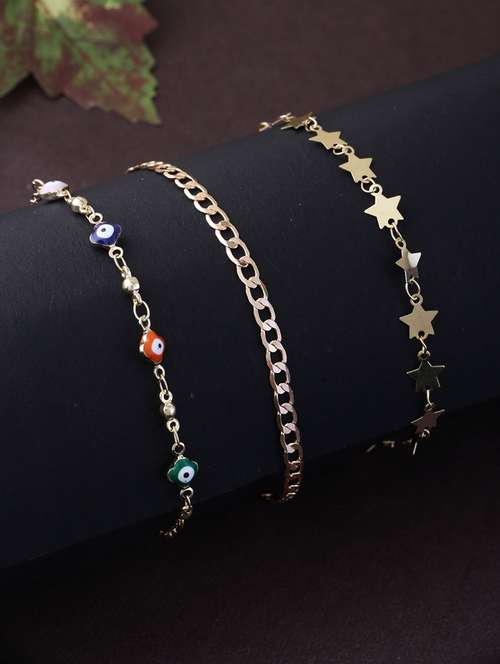 women gold plated anklet ( pack of 3) - 21713685 -  Standard Image - 1 women gold plated anklet ( pack of 3) - 21713685 -  Zoom Image - 1