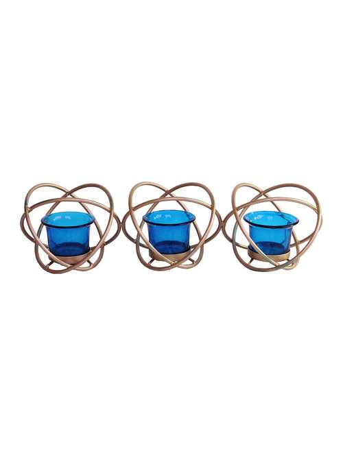 hosley iron tealight candle holder with blue glass cup and free tealight for home decoration