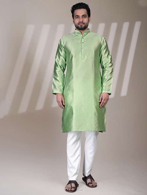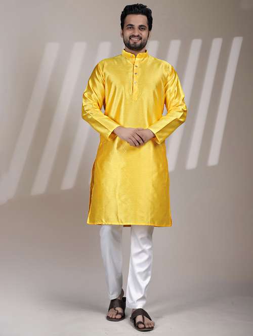 Gold Jacquard Kajukatri Design Kurta For Mens