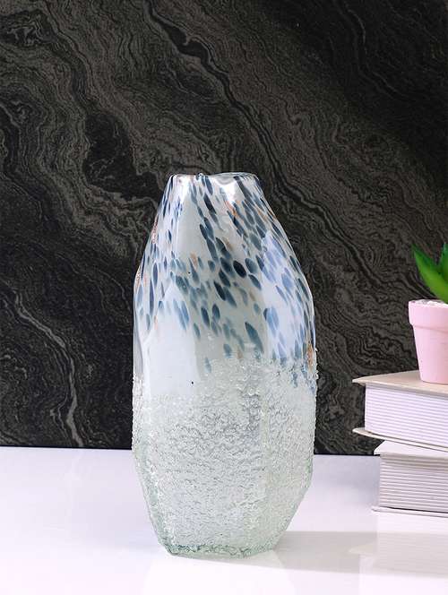 Adorned with delicate specks of color, this clear handcrafted glass vase is a masterpiece of artisanal design. Its understated beauty makes it perfect for gifting or enhancing your home decor. A versatile and elegant accent for any space.