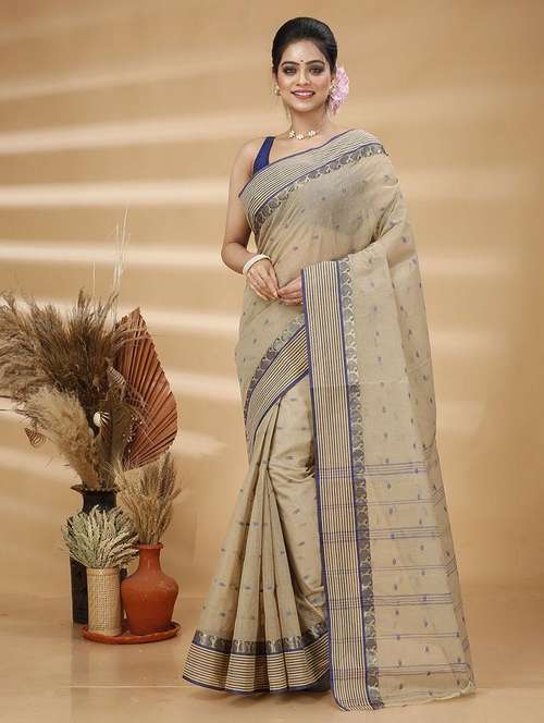 women beige self design jamdani saree with blouse