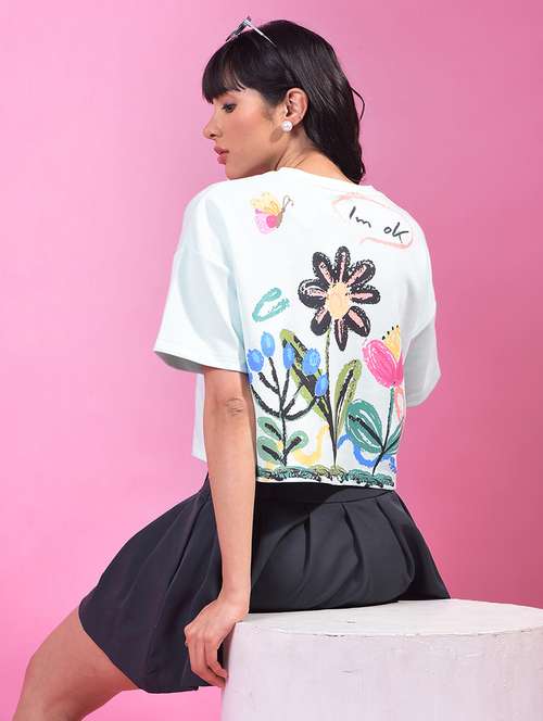 - » women printed short sleeve oversized crop t-shirt