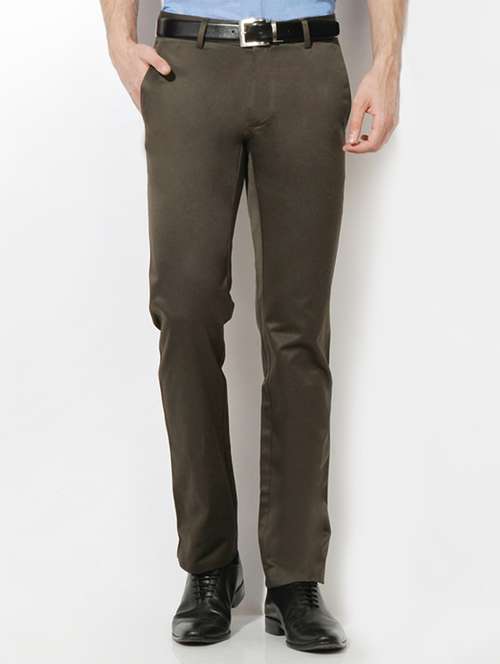 green cotton blend flat front formal trouser - 15236371 - Very Small Image - 1