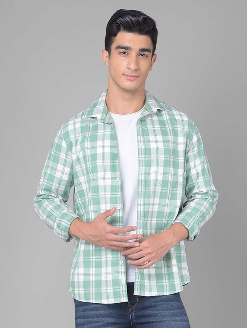 - » men tartan checkered sea green cotton casual shirt