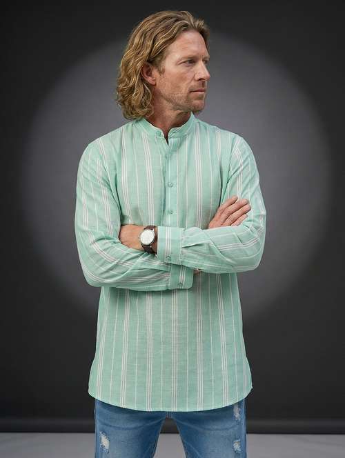 - » men striped mandarin neck short kurta