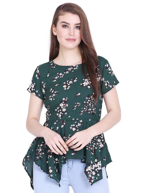 - » floral pleated asymmetric top