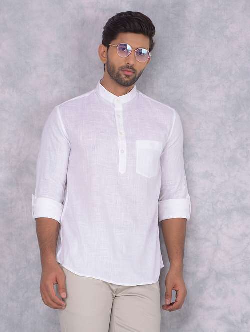 men mandarin neck solid short kurta