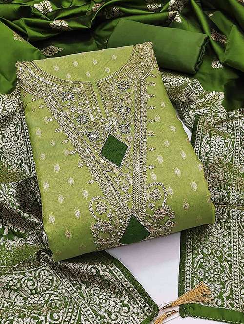 - Look ultra gorgeous in unstitched suits from Peachmode and grab these beautiful suits in green colour.