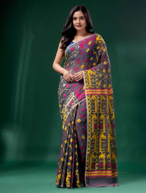 Look glamorous and alluring in this red matka silk handwoven saree. It has plain all over with zari and the borders have geometric patterns.