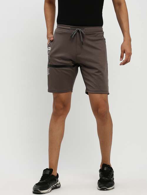 SHOWOFF Men's Mid-Rise Knee Length Printed Taupe Cotton Short