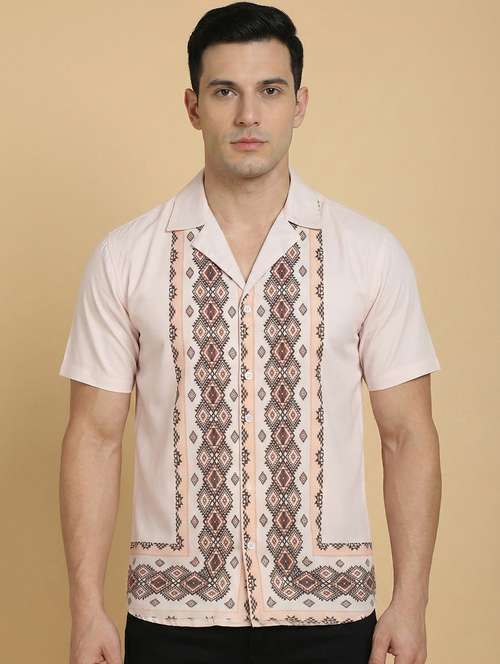 - » men printed short sleeve regular fit casual shirt