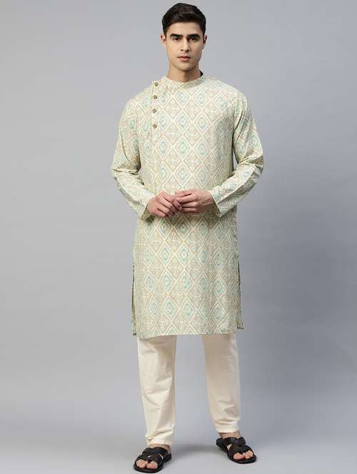 - » straight style grey color cotton printed kurta with cream pajama