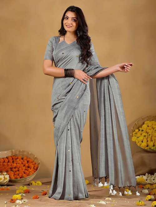 - » women solid with work handloom saree with blouse