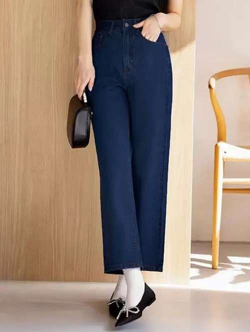 women solid high rise straight fit jeans - 22241485 -  Standard Image - 1 women solid high rise straight fit jeans - 22241485 -  Zoom Image - 1