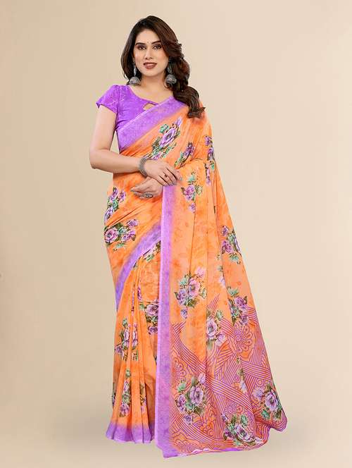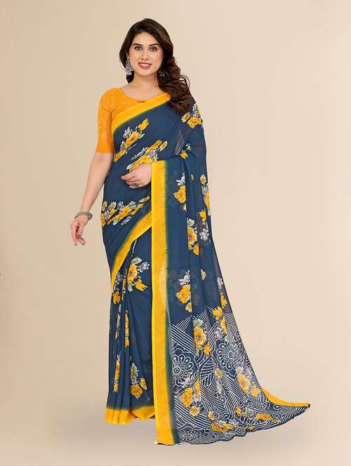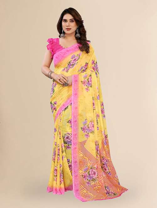 Add a touch of effortless elegance to your everyday wardrobe with this beautifully designed floral print georgette saree. Crafted from lightweight and breathable georgette fabric, this saree ensures comfort throughout the day, making it perfect for daily wear or casual outings.