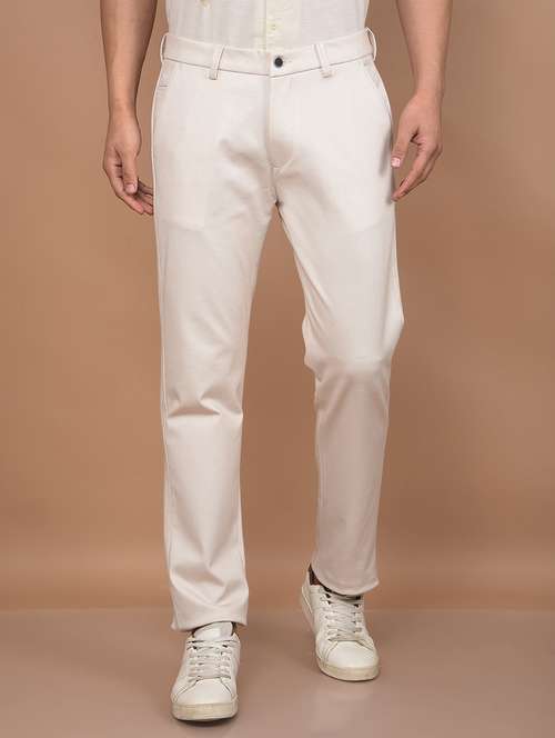 men solid mid rise flat front casual chinos