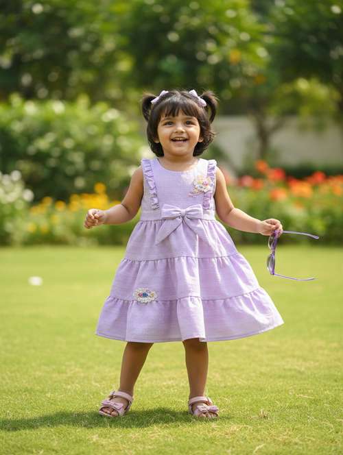 - Wondering where to buy frocks for your little ones? Get them from V-Mart in lavender colours.