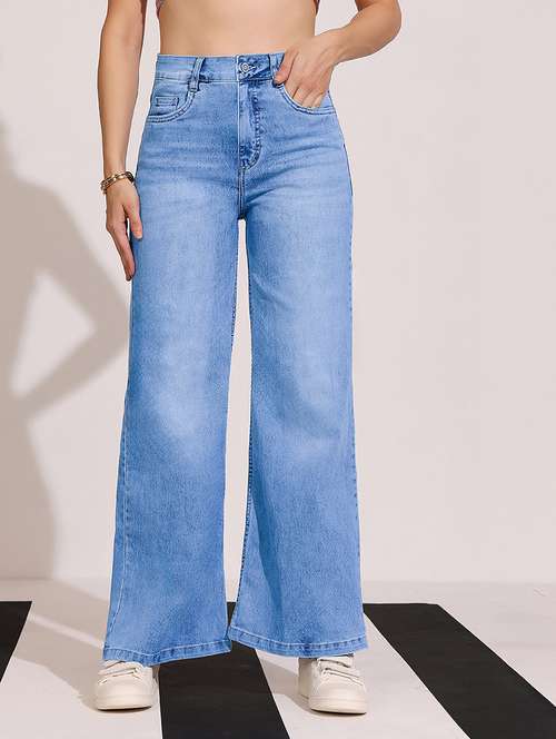 - » women light blue denim wide leg jeans