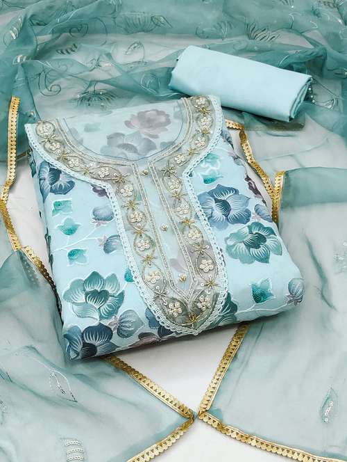 - Look ultra gorgeous in unstitched suits from Manvaa and grab these beautiful suits in light blue colour.