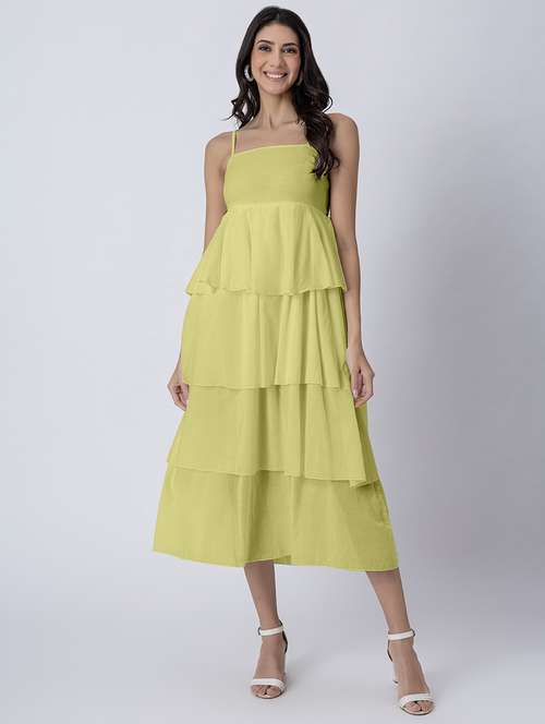 - Looking for some awesome collection of dresses? Well, lay your hands on this dress from Moomaya and also get the option of choosing from lime colour.