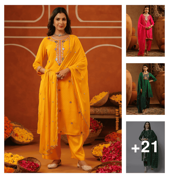 women solid with work three quarter sleeve kurta pant with dupatta set