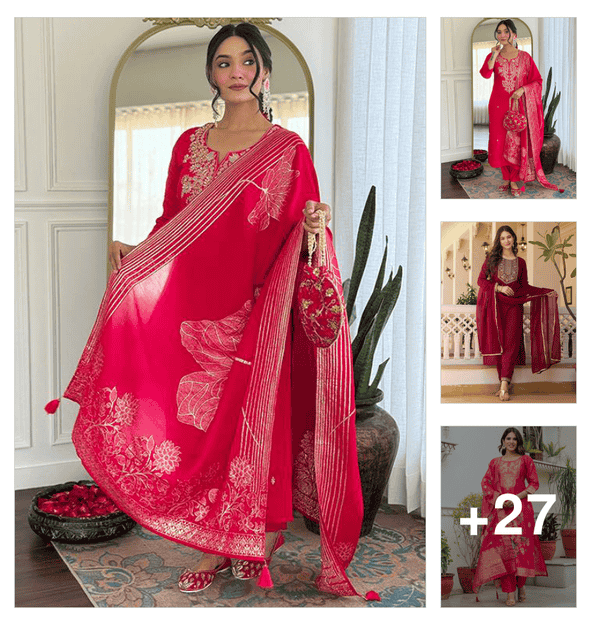 women embroidered three quarter sleeve kurta pant with dupatta set