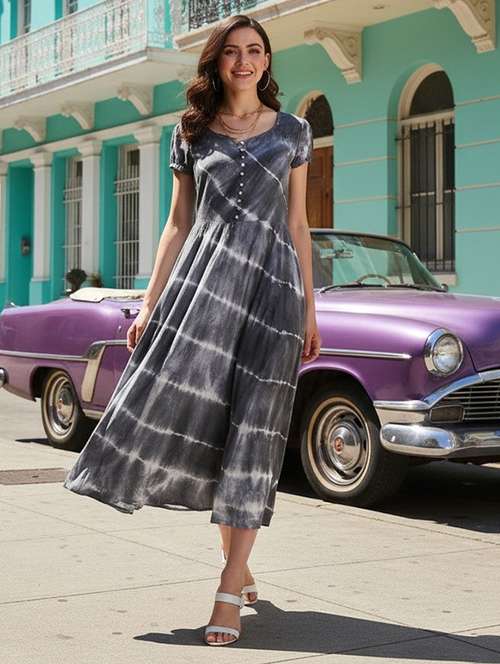 women printed round neck fit & flare dress