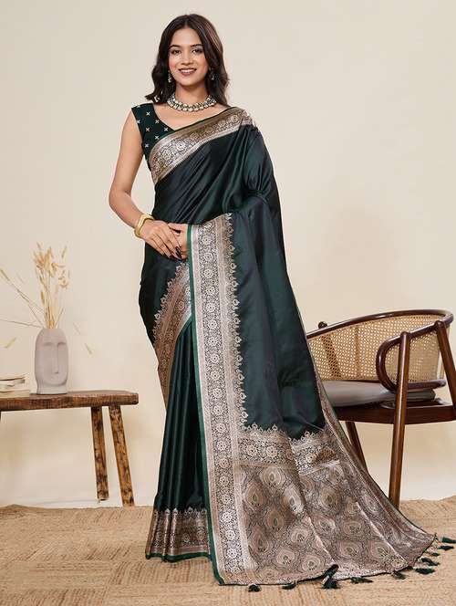 We offers Banarasi Softy Silk Saree with Rich intricate Golden Zari Jacquard work at Border & Grand Pallu. Blouse, Border and Pallu have very fine zari matching with Saree body. Saree has beautiful zalar (Tessel) work at pallu. Saree & Blouse Material is Litchi Silk which very Soft and Skin Friendly material. This Saree has a Length 6.30 Meter Which Includes 0.8 meters of the blouse. These new Bollywood designer fashionable saree for women can be used as Party wear saree, Festival saree, wedding saree on every Occasions. Product colour may slightly very due to photographic lighting sources or your monitor settings.