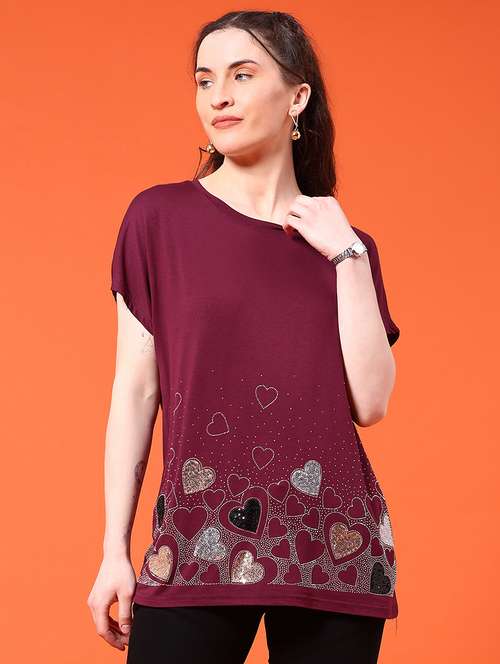 - Get ready to adorn some funky tees! LimeRoad brings to you the finest collection of tees from V-Mart and that too in maroon colours.