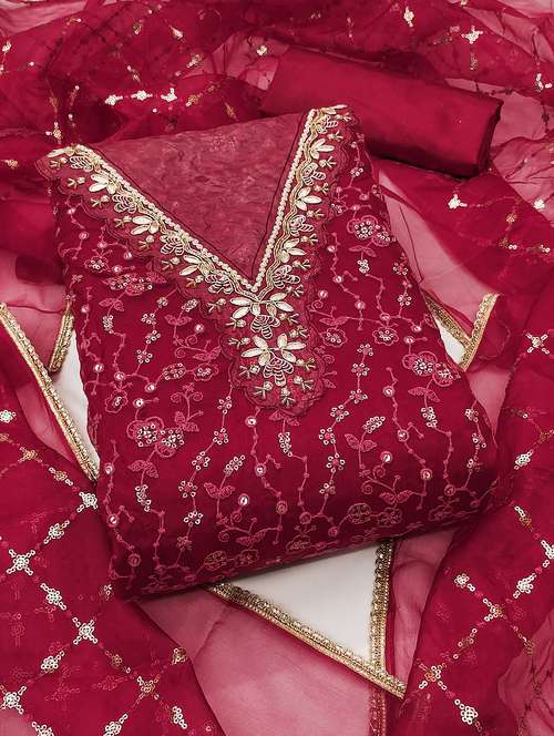 - Look ultra gorgeous in unstitched suits from Manvaa and grab these beautiful suits in maroon colour.