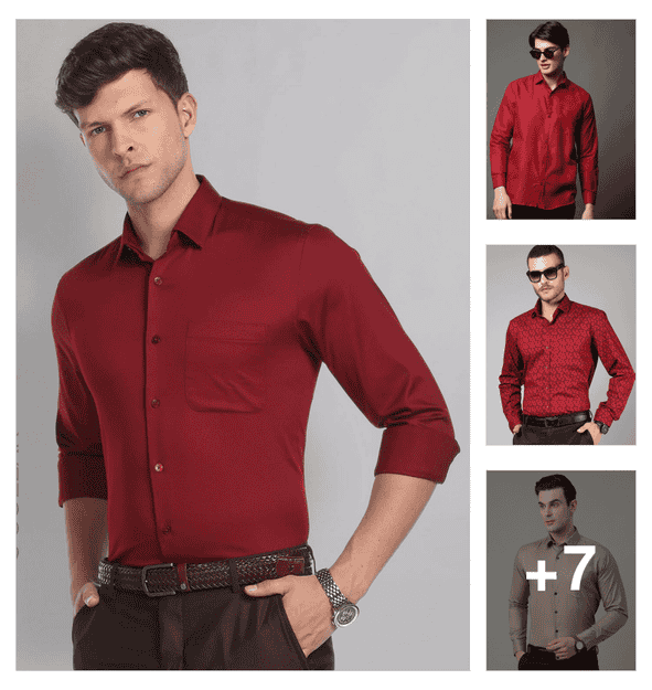 men printed long sleeve formal shirt